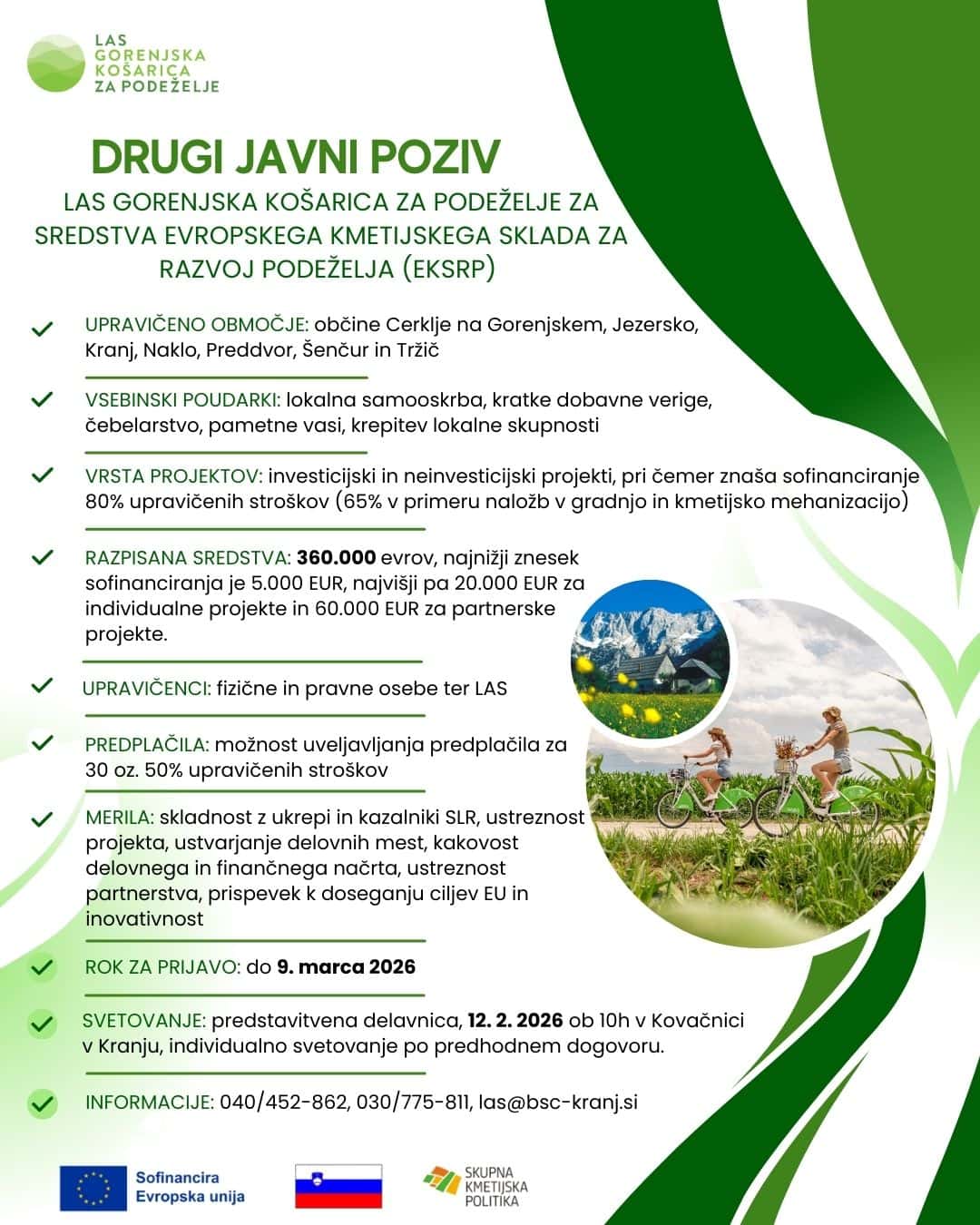 ODPRTA JAVNA POZIVA LAS GORENJSKA KOŠARICA ZA PODEŽELJE– do 31. marca 2025